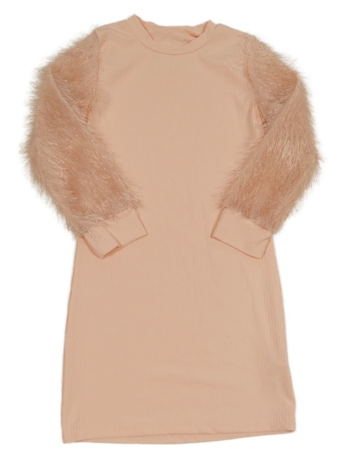 Růžové žebrovano/chlupaté šaty s třpytkami