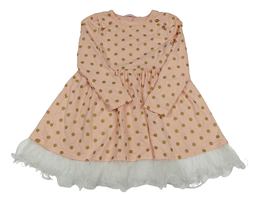 Růžové puntíkaté bavlněné šaty s tylem