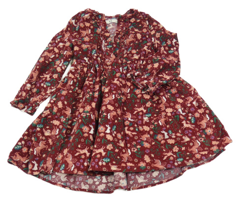 Vínové manšestrové šaty se zvířátky s kytičkami C&A