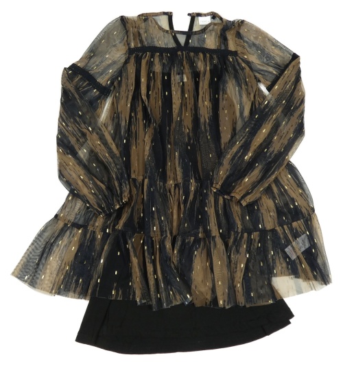 Hnědo-černé vzorované třpytivé tylové šaty Next