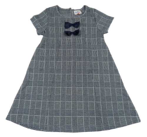 Tmavomodro-šedé kostkované třpytivé šaty s mašlemi Topolino