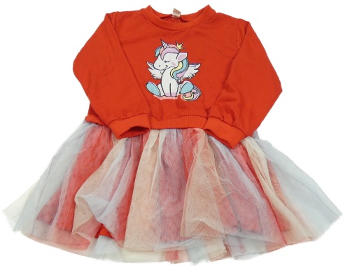 Červené teplákové šaty s jednorožcem a tylovou sukní