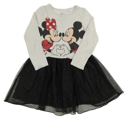 Šedo-černé úpletové lehké šaty s černou tylovou sukní a Mickeym a Minnie C&A
