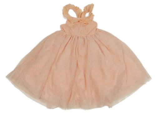 Lososové žebrované šaty s volánky a tylovou puntíkatou sukní
