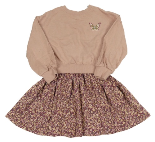 Světlerůžové teplákové šaty s motýlkem a květovanou sukní John Lewis
