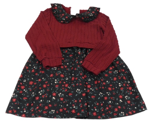 Vínovo-černé šaty s květinami a límečkem Shein
