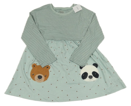 Světlemodro-šedé šaty s pandou a medvídkem a puntíky a pruhy Next
