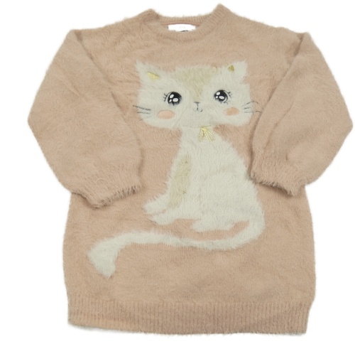 Světlerůžové pletené chlupaté šaty s kočkou C&A