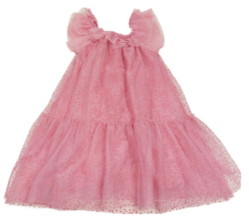 Růžové puntíkaté tylové šaty s volánky LEIGH TUCKER