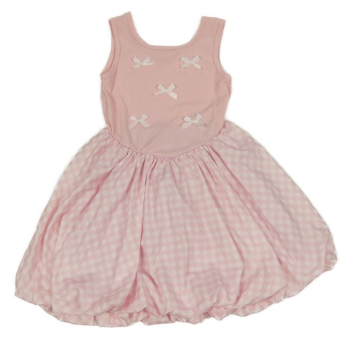 Světlerůžovo-bílé žebrované šaty s mašlemi a kostkovanou sukní Shein