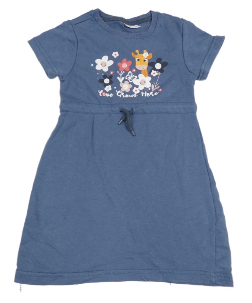 Modré teplákové šaty se žirafou a kytičkami