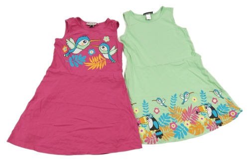 2x šaty - tmavorůžové bavlněné s ptáčky + světlezelené