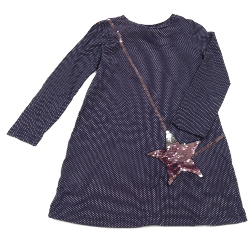 Tmavomodré puntíkaté bavlněné šaty s hvězdou z překlápěcích flitrů
