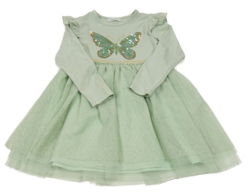 Světlezelené bavlněno/tylové šaty s motýlem z flitrů Primark
