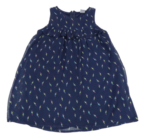 Tmavomodrá šifonová šatová tunika s papoušky Kiki&Koko