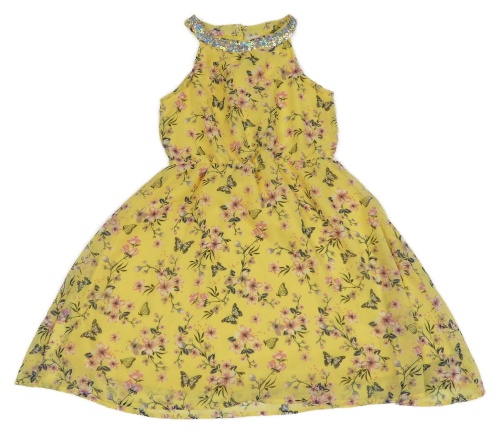 Žluté květované šifonové šaty s motýly a flitry Kiki&Koko