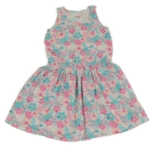 Bílo-modro-růžové květované puntíkaté šaty