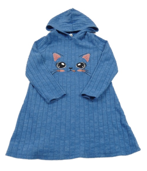 Modré melírované žebrované úpletové šaty s kočičkou a kapucí SHEIN