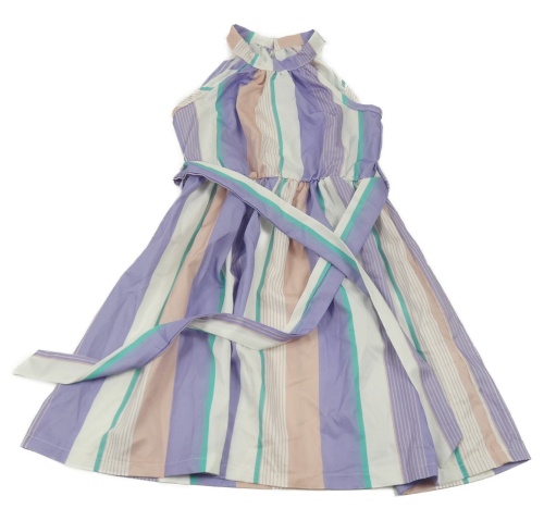 Barevné pruhované šaty s páskem