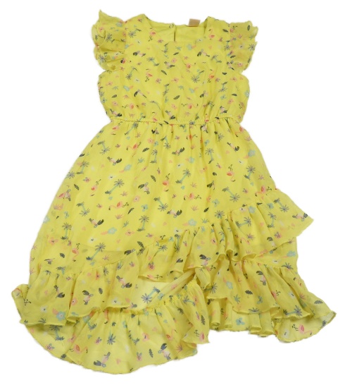 Žluté šifonové šaty s květinami a zvířaty Kiki&Koko