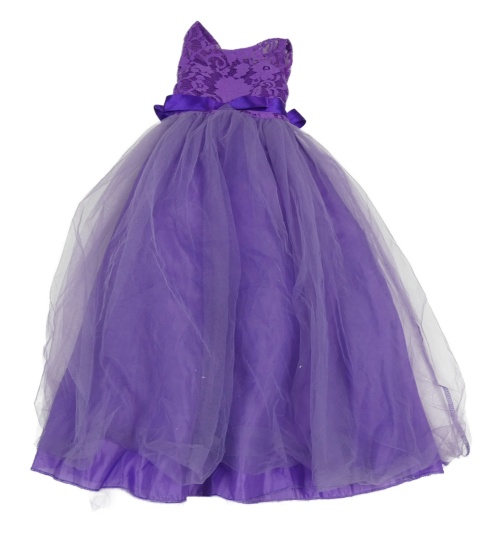 Fialové krajkové/tylové slavnostní šaty s páskem