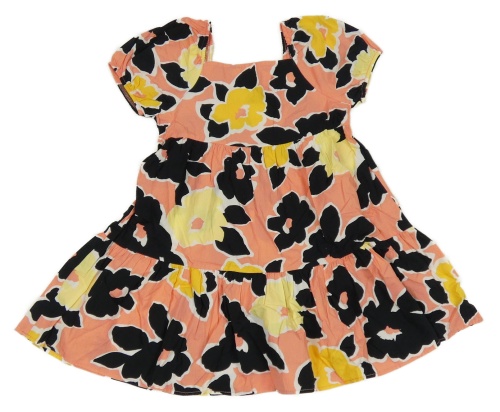 Růžovo-černo-žluté květované plátěné šaty F&F