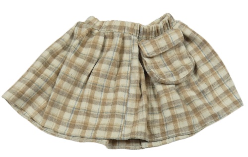 Béžovo-hnědá kostkovaná úpletová kolová sukně s kapsou