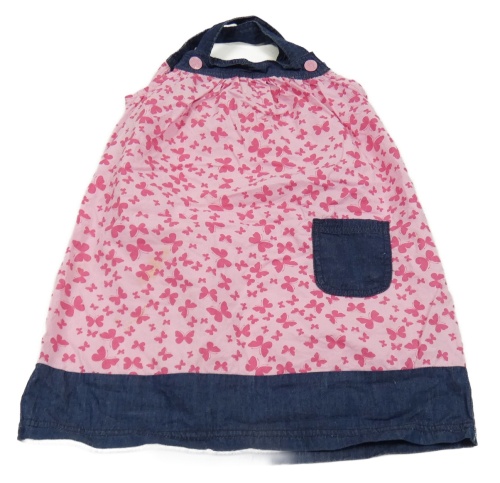Růžovo-tmavomodré plátěno/riflové letní šaty s motýlky Kiki&Koko