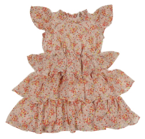 Růžovo-barevné květované šifonové vrstvené šaty H&M