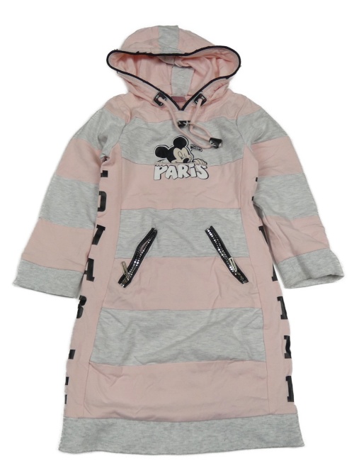 Světlerůžovo-šedé pruhované teplákové šaty s Mickeym a kapucí