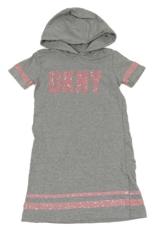 Šedo-růžové teplákové šaty s logem a kapucí DKNY