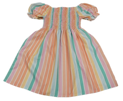 Barevné pruhované lehké šaty s žabičkováním