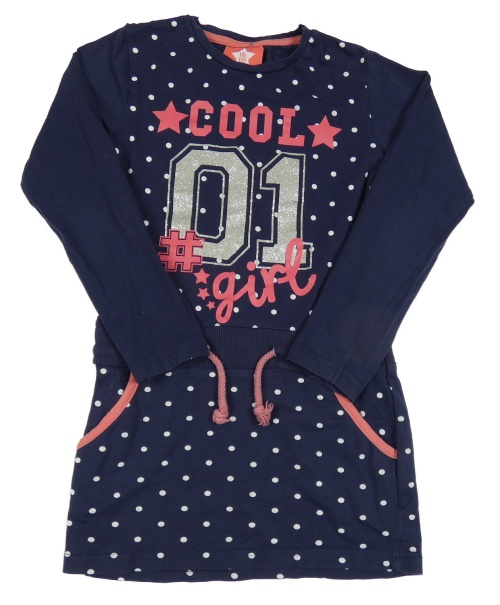Tmavomodré bavlněné šaty s nápisem a puntíky