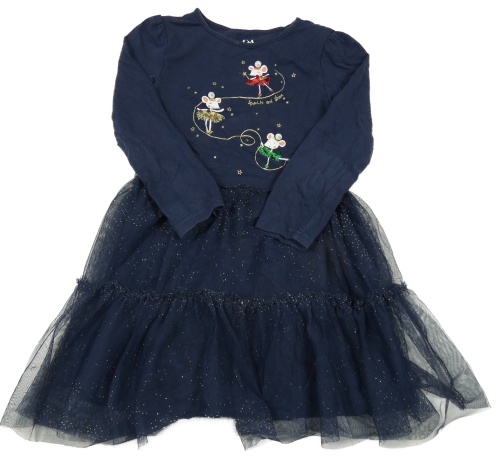 Tmavomodré bavlněné šaty s myškami a tylovou sukní C&A