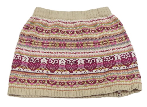 Béžovo-růžovo-šedá vzorovaná pletená sukně se sovami