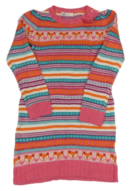 Růžovo-barevné vzorované svetrové šaty s liškami a mašlí H&M
