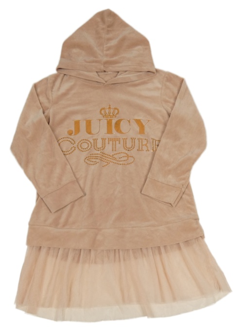 Světlerůžové sametovo/síťované šaty s nápisem a kapucí