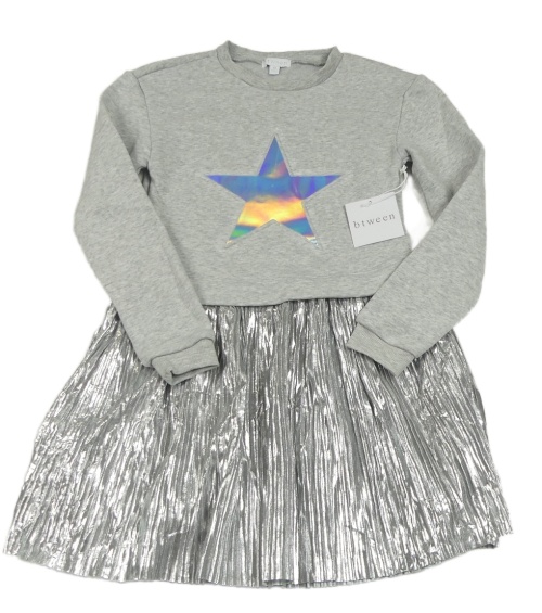 • Nové - šedo-stříbrné melírované teplé teplákovo/plisované šaty s metalickou hvězdou btween