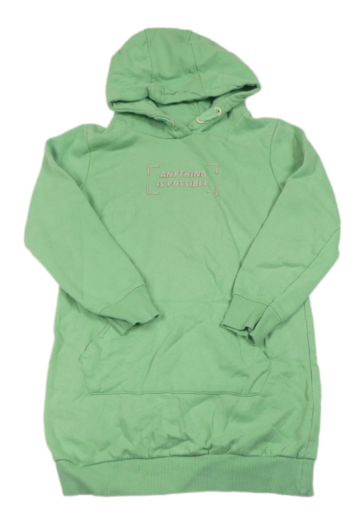 Zelené teplákové šaty s 3D nápisy a kapsou a kapucí Topolino