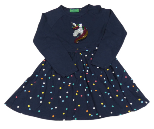 Tmavomodré šaty s jednorožcem a puntíkatou sukní Mountain Warehouse