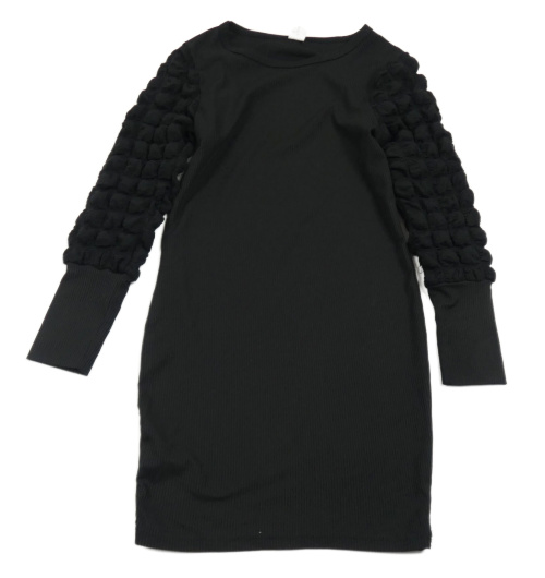 Černé žebrované šaty s prošívanými rukávy Shein