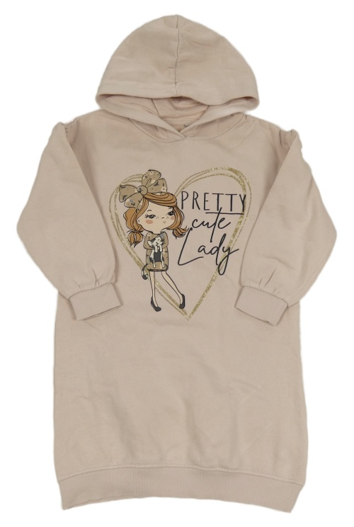 Pudrové teplákové šaty s dívkou a kapucí C&A