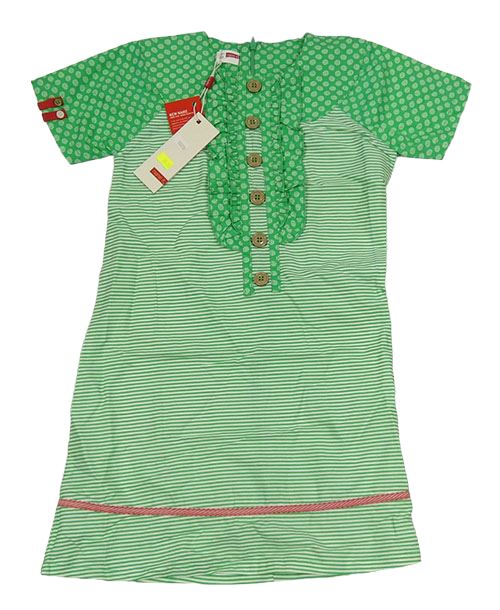 Zeleno-bílé pruhované plátěné šaty s knoflíčky Name it