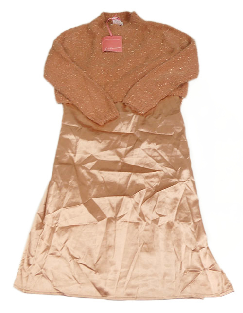 Nové - 2set- růžový třpytivý chlupatý svetr + růžové saténové šaty Lulurain
