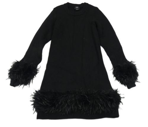 Černé pletené žebrované šaty s kožešinovým lemem River Island