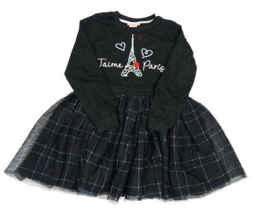 Černé šaty s nápisem a tylovou kostkovanou sukní