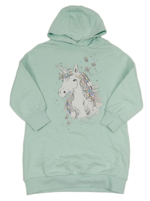 Světlemodré teplákové šaty s jednorožcem a kapucí Next