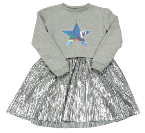 Šedo-stříbrné teplákovo/plisované šaty s hvězdou