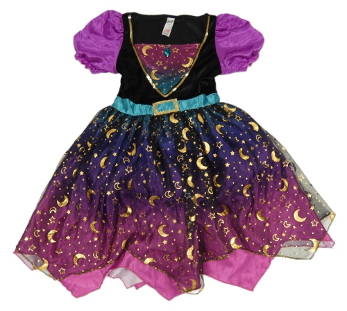 Kostým - Černo-filovo-modré sametovo/tylové šaty s měsíci a hvězdami - čarodějnice