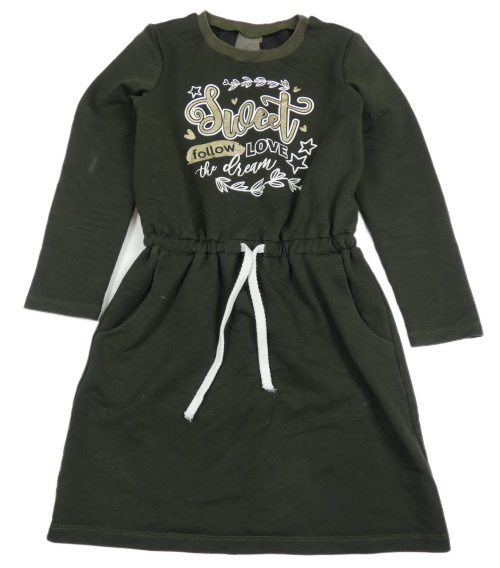 Tmavozelené teplákové šaty s nápisem